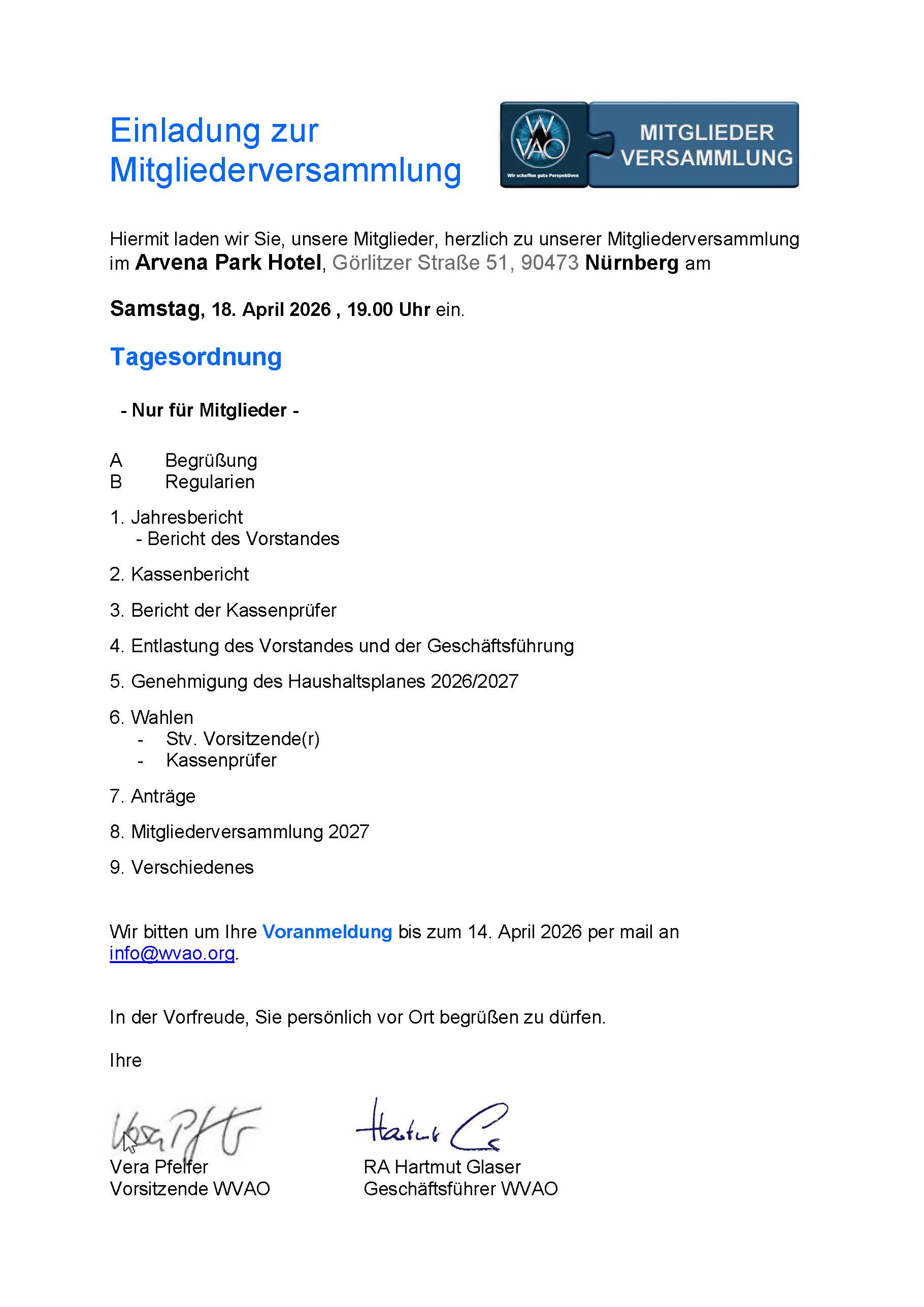 Einladung: WVAO Mitgliederversammlung 2026